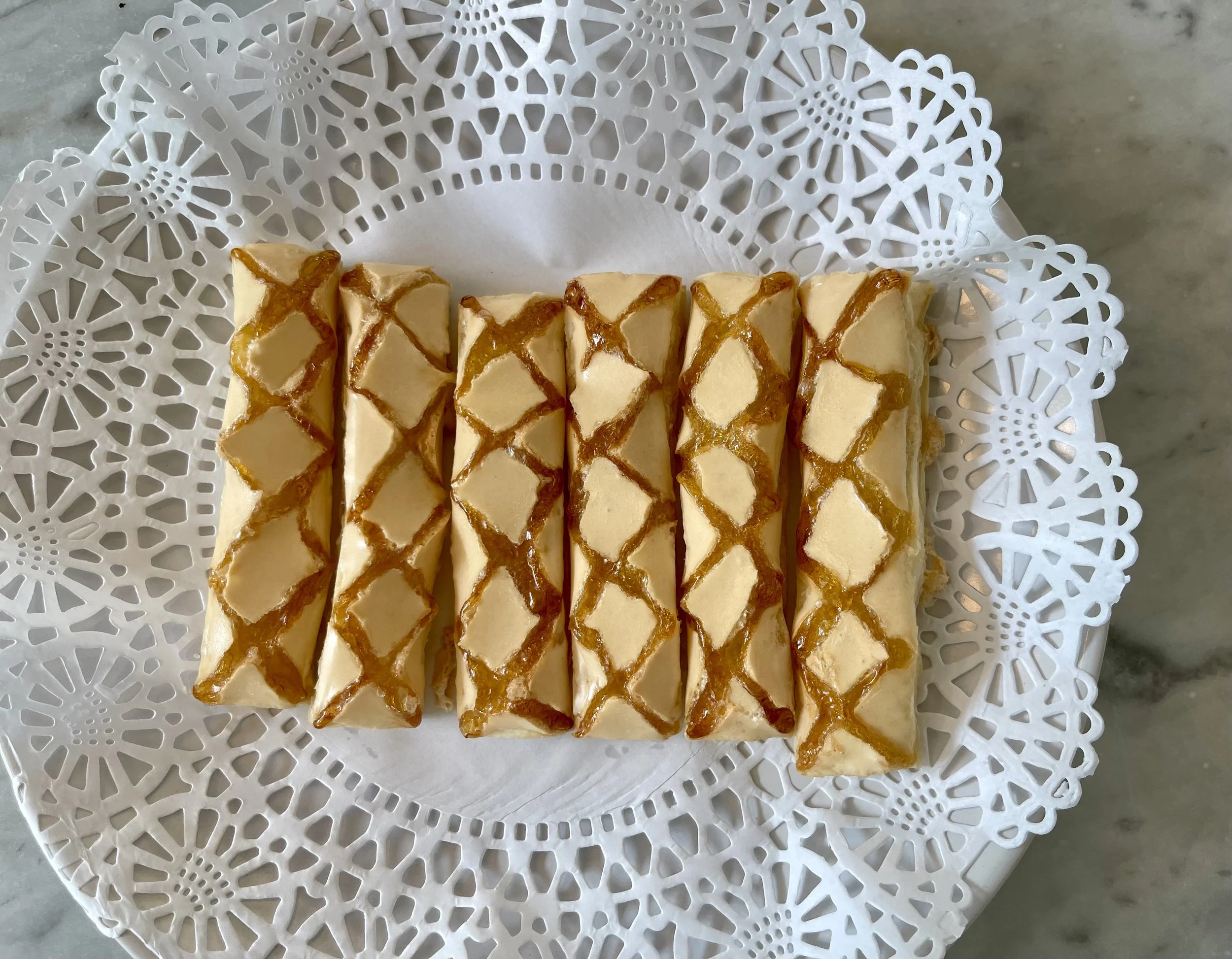 /When I was growing up, I always dreamed of traveling around the world. I love discovering the beauty of different places, experiencing the culture, mingling with the locals and of course, learning about and tasting the food—both sweet and savory. A few years ago I was in the small town of Bassano del Grappa and found a very charming bakery, Pasticceria Caffeterria del Borgo. I saw a bag of the most interesting Italian cookies, sfogliatine glassate, or glazed puff pastry. Their name comes from the Italian word "sfoglia" meaning "sheets", which describes the layering of the puff pastry dough.